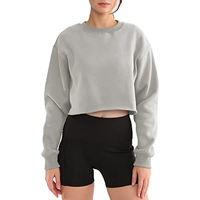クロップドフィットスウェットシャツ高重量ポリエステルコットンルーズオープンヘムドロップ肩カジュアル女性スポーツウェア