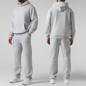Groothandel Custom Logo Oversized Franse Terry Oversized Elastische Taille Joggingbroek Casual Outfit Twee Stukken Mannen Trainingspak Hoodie Set